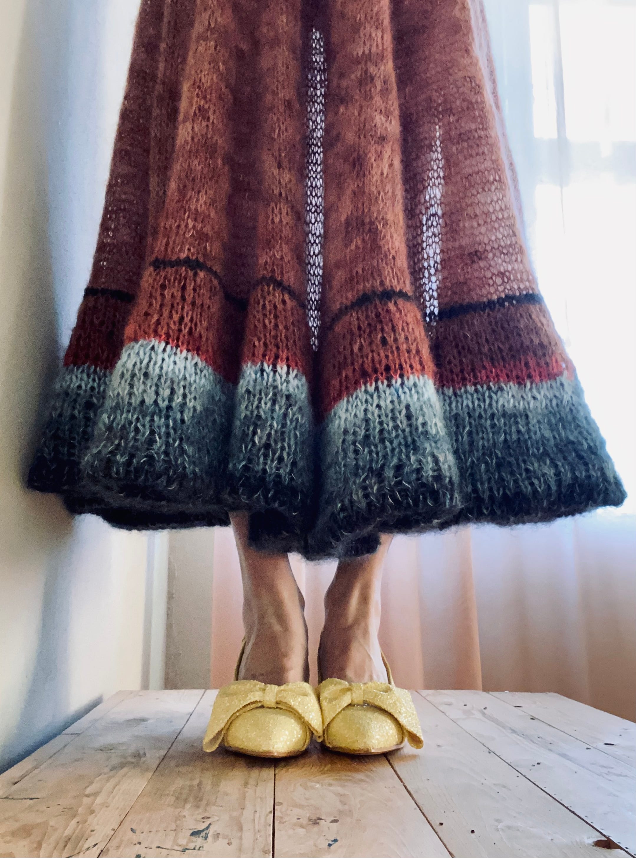 This skirt is a variation on the original Paris Skirt which I posted about on August 5th. I’m notoriously bad at knitting the same thing twice (even most of my sleeves are not identical). So when initiating the Paris Skirt knit along in December, I had all the best intentions of following my own pattern but already failed at cast on. Due to losing at yarn chicken I cast on ten stitches less which I knew wouldn’t be a problem given the vast amount of positive ease in this skirt on my body. After messing up the cast on I did follow the pattern pretty much exactly. I say pretty much because I never know. I might have knit a few rows more or less between the increase rounds. I did decide on making a bubble hem pretty early on. So here’s how I did that: