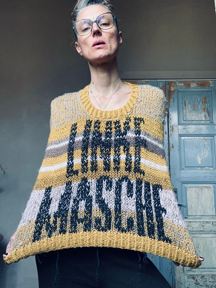 I believe our craft holds meaning in more ways than we can conceive. When I look at my own knitting history, I see lineage. My mother taught me how to knit. I was ten years old, I wanted leg warmers for my ballet class. My mother gave me a pair of knitting needles, we chose a few yarns from a local yarn shop and she showed me how to make a pair of leg warmers. Thinking about why she taught me how to make my own instead of going out to buy a pair, I come to a few reasons: My mother grew up penniless. If she needed something, let alone wanted something, she had to get creative. Things weren’t simply available, they had to be imagined first. My mother is also a long time feminist. Growing up in post war Germany as an only girl within a family of five children, with a mother who upheld the entire family system, the political movements of the sixties and seventies… she wanted to make sure I, a girl, learned how to take agency. Even if it was just a pair of leg warmers. She could buy them for me or she could teach me how to create them. It was a small act of independence. My mother also deeply cared for non conformity. She wore turquoise pants with a spiderweb pattern, her waist long hair dyed bright red with henna, brightly colored hand knit sweaters and flea market coats. In the eighties she turned to red stiletto heels and one large earring. We got our clothes from kilo shops and community swaps. Everything my mother did was a political statement. Her work not meant to make money but to make things better. Her style a statement against the establishment. Her long red hair a literal reference to the women burned at the stakes. The food we ate, the clothes we wore, the places we lived, the people we knew, the books she read… she resisted and refused. Even in her knitting, she refused to use patterns or follow fashion. She fought at every corner, her anger and pain sometimes boldly expressed, often eating her up inside. Knitting meant a pause and a way to resist. It was passed down to me as an act of independence, a tool for expression and a possibility for steadiness even if the world or oneself is falling apart.